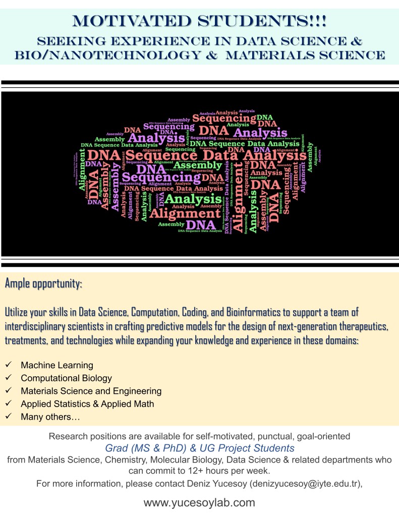 Submit your resume and a brief statement of interest via email to denizyucesoy@iyte.edu.tr. Open to all students all levels committed to excellence. Successful applicants will be notified for interviews.